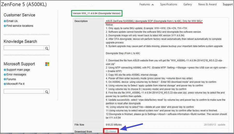 This instruction is for ASUS ZenFone 5 (A500KL) WW sku downgrade only.