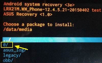 7. Select "WW_A500KL-11.4.6.94-20141218_M3.5.22-ota-user.zip" by volume key and then press power key to confirm.